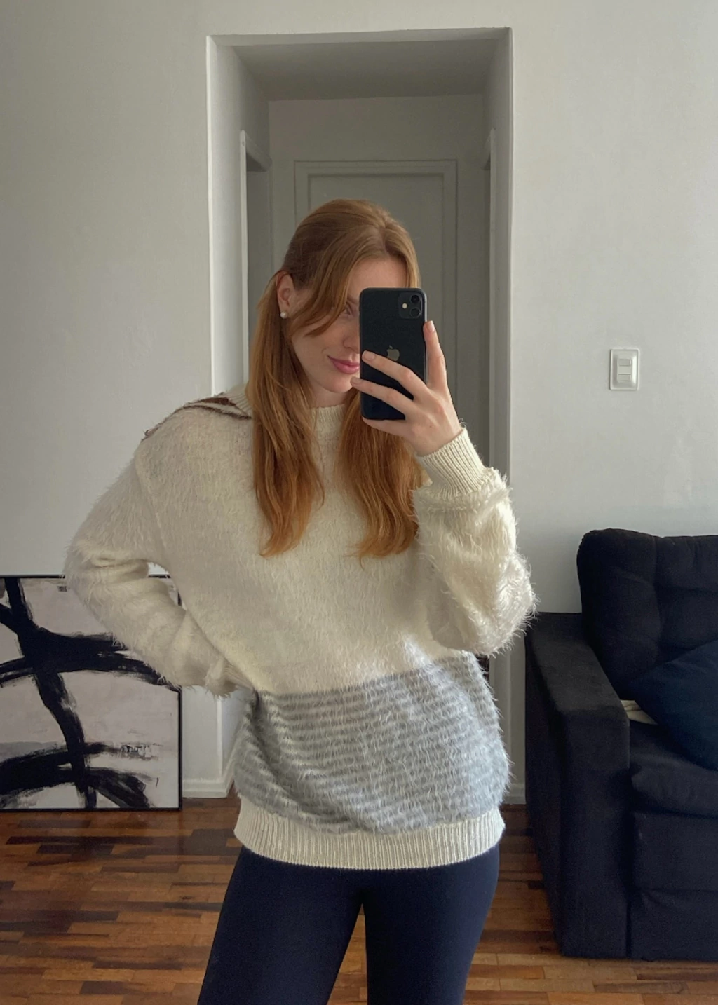 Conforto em forma de peça ❤ Esse suéter peluciado off-white tem textura macia e quentinha, daquelas que abraçam. Modelagem reta e levemente oversized, combina com tudo. Peça originalmente vintage, feita pra durar e atravessar invernos.